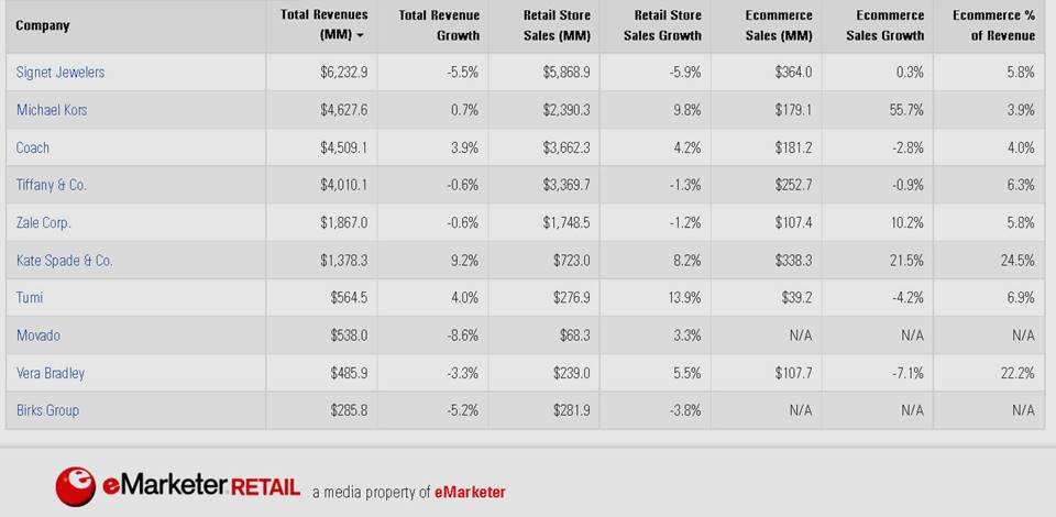 The following chart from eMarketer gives us the answer. (NOTE: Click on the preceding link to all the firms in alphabetical form; and click on the retailer’s name to see a lot more data from eMarketer.)